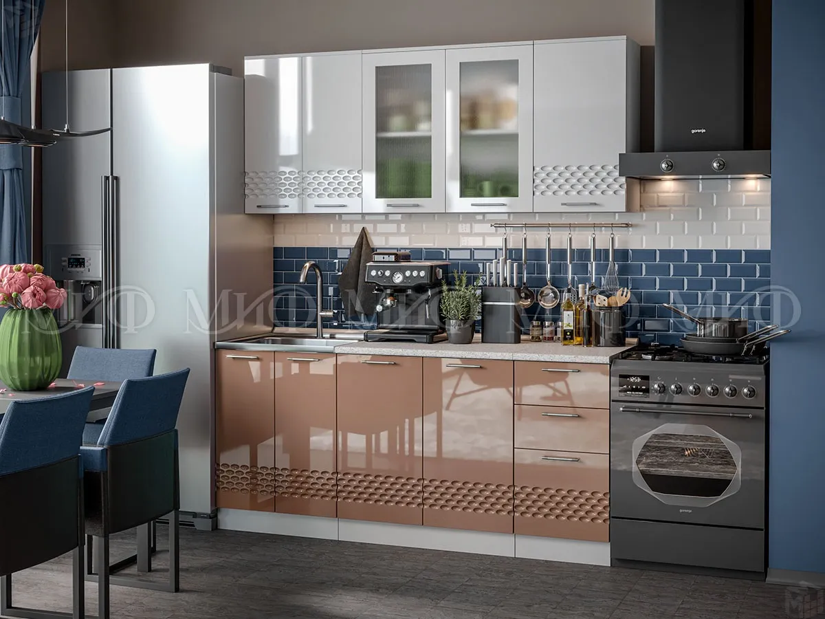 Корпус ЛДСП Белый. Фасады МДФ Белый глянец/капучино глянец. -