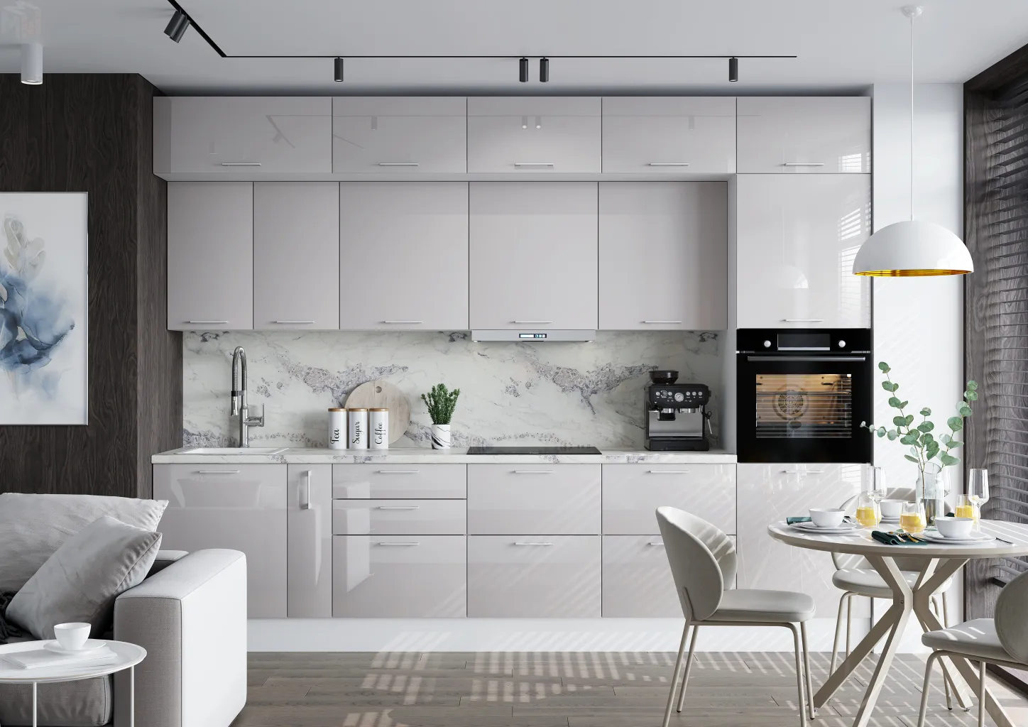 Кухонный гарнитур Galaxy 3,2 кашемир серый глянец