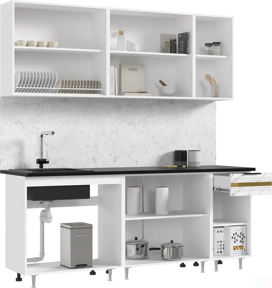 Кухонный гарнитур Милена 2,0 (мрамор белый/мрамор блэк)