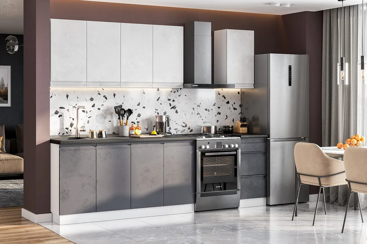 Кухонный гарнитур Вельвет (2,0м) (МДФ) (без столешниц) Бетон Снежный / Бетон графит