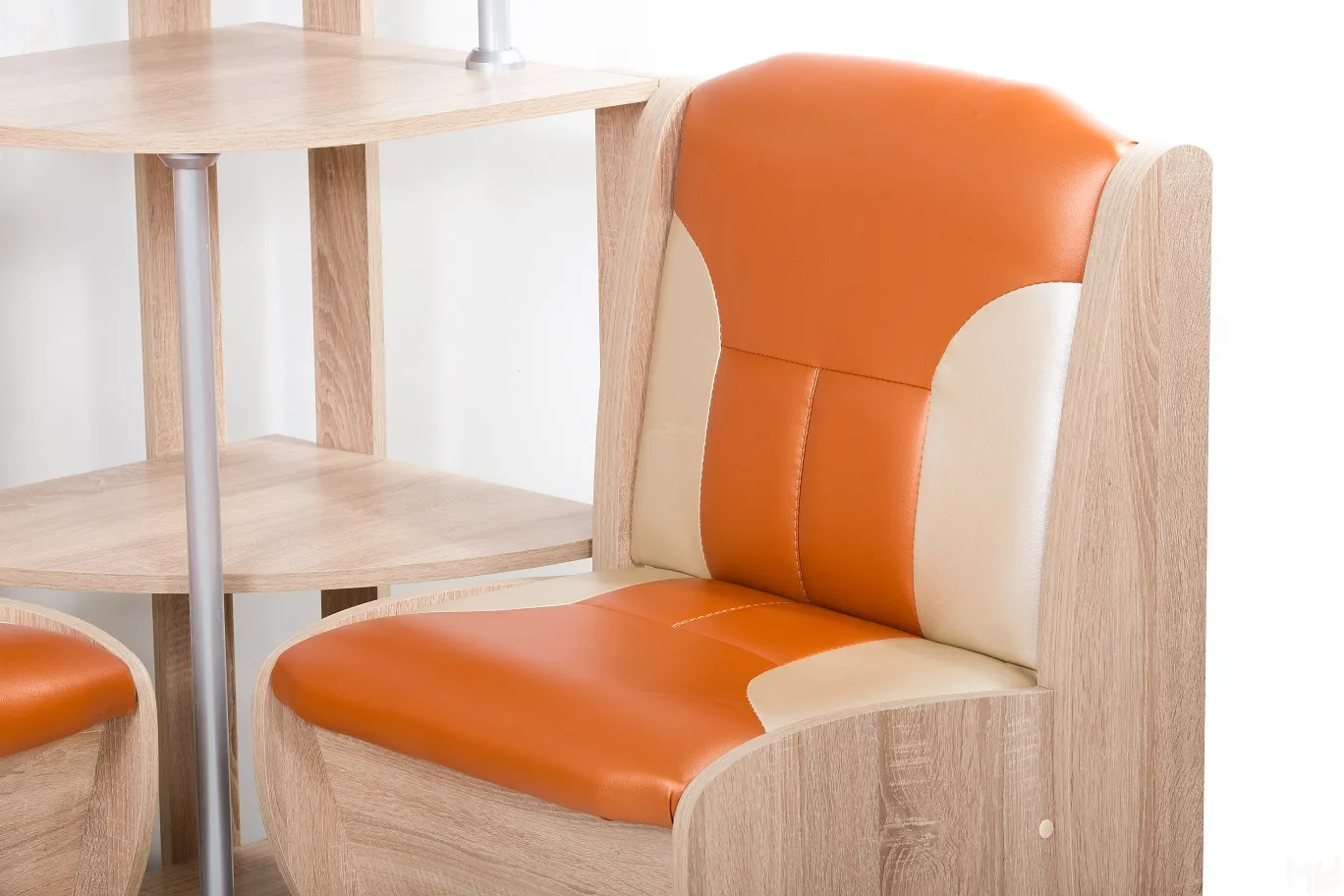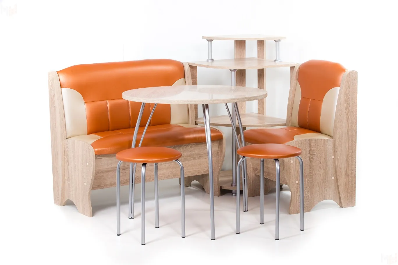 Угловая скамья Лотос имеет 2 ящика под сидениями для хранения мелочей. Каркас выполнен из ЛДСП дуб сонома, обивка выполнена из кожзама Терра эффект 120/101. -