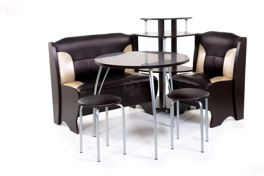 Угловая скамья Лотос имеет 2 ящика под сидениями для хранения мелочей. Каркас выполнен из ЛДСП венге, обивка выполнена из кожзама Терра эффект 221/101. -