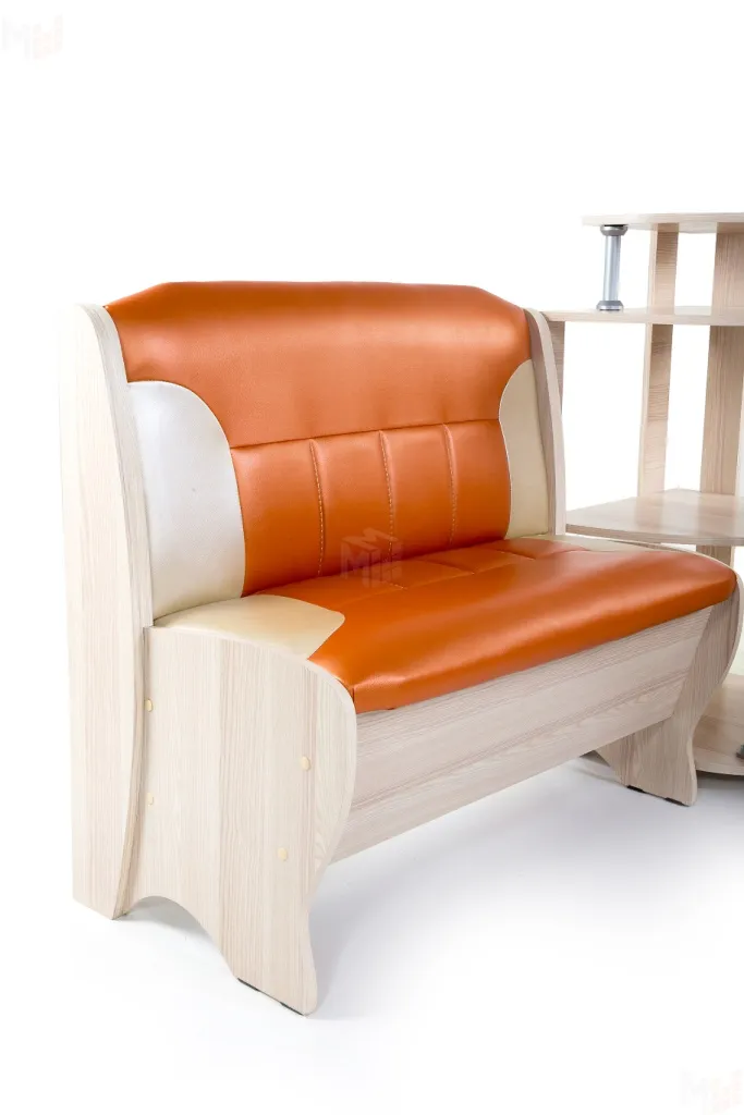 Угловая скамья Лотос имеет 2 ящика под сидениями для хранения мелочей. Каркас выполнен из ЛДСП ясень шимо, обивка выполнена из кожзама Терра эффект 105/101. -