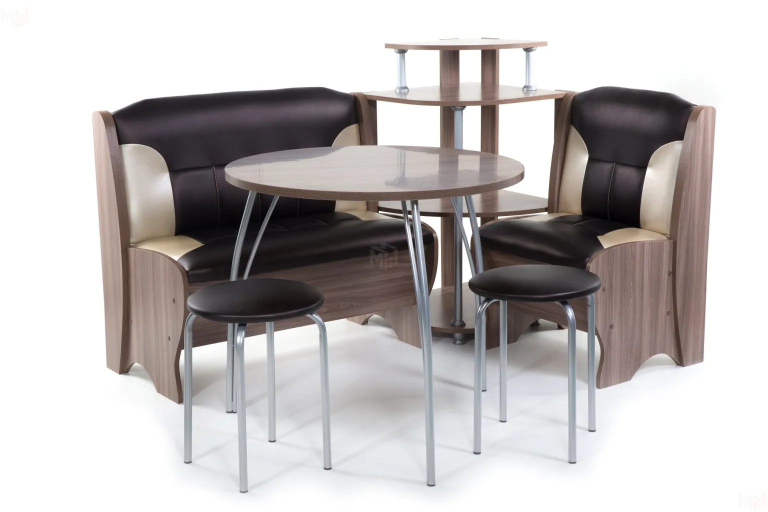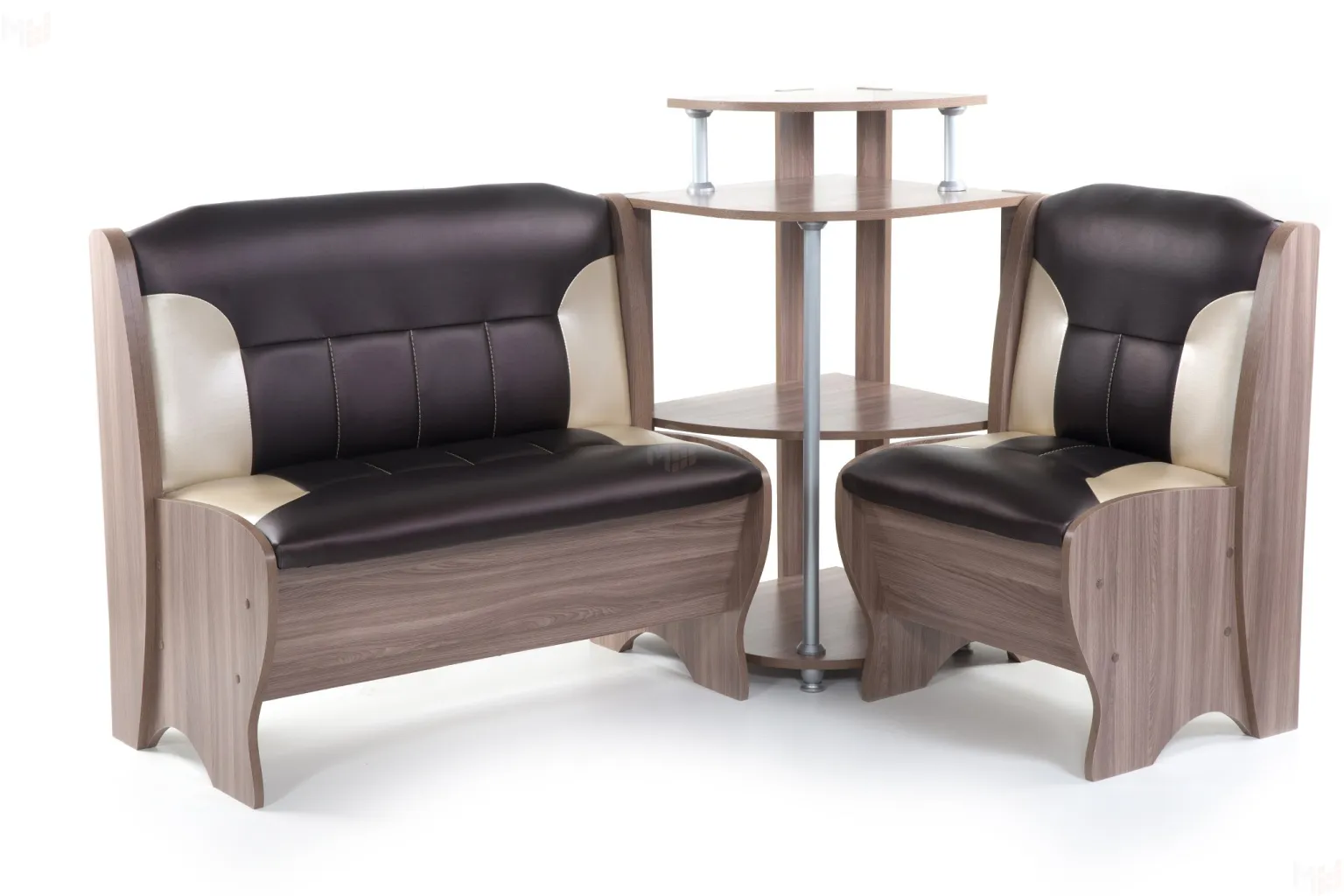 Угловая скамья Лотос имеет 2 ящика под сидениями для хранения мелочей. Каркас выполнен из ЛДСП ясень шимо темный, обивка выполнена из кожзама Терра эффект 221/101. -