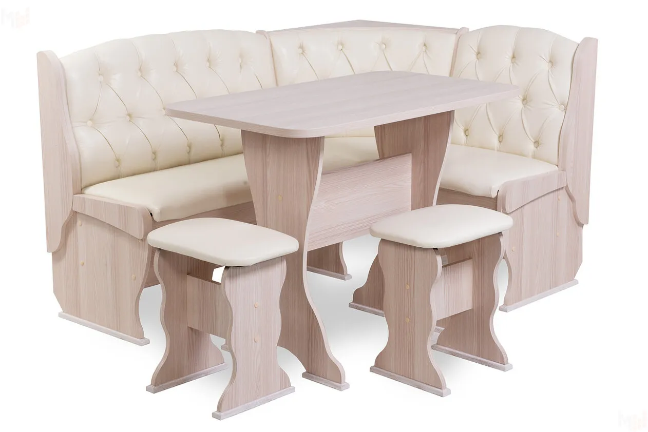 Оригинальный дизайн гарнитура станет украшением Вашей кухонной зоны и местом встреч для семейных вечеров за чашечкой горячего напитка. Угловую скамью можно собрать как в правом, так и в левом исполнении.