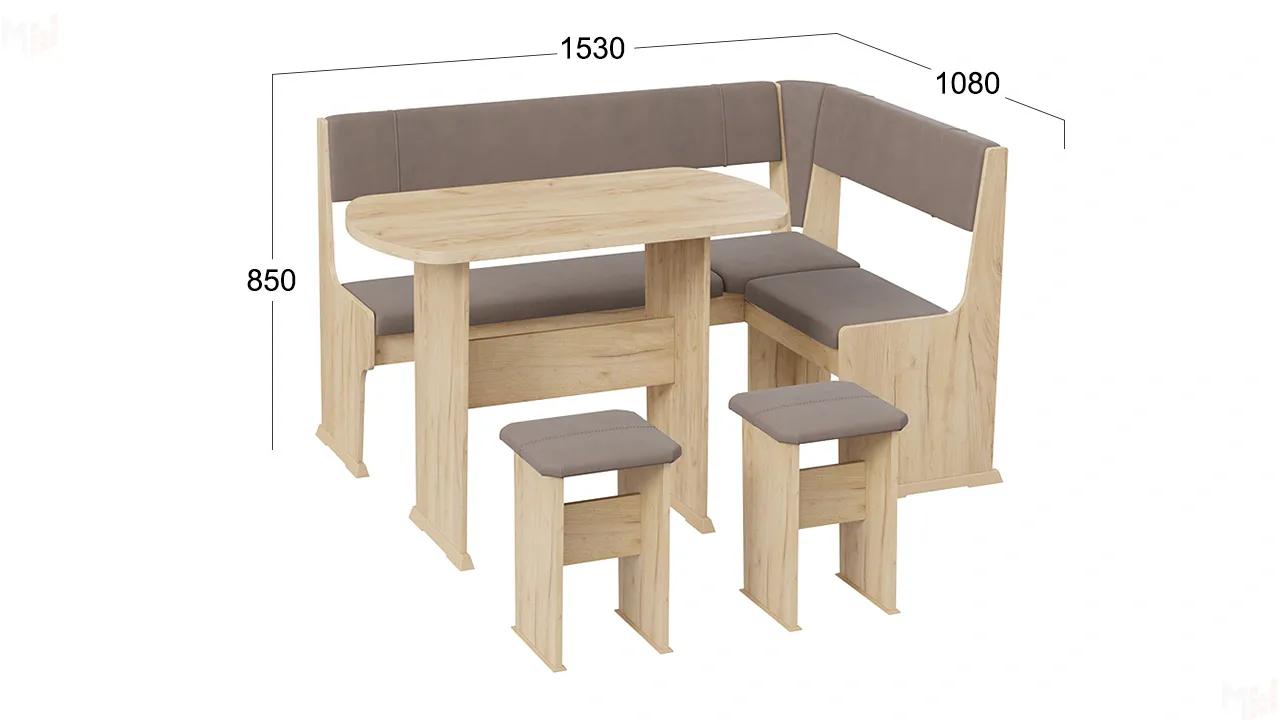 Ширина: 1530 мм, Глубина: 1080 мм, Высота: 800 мм