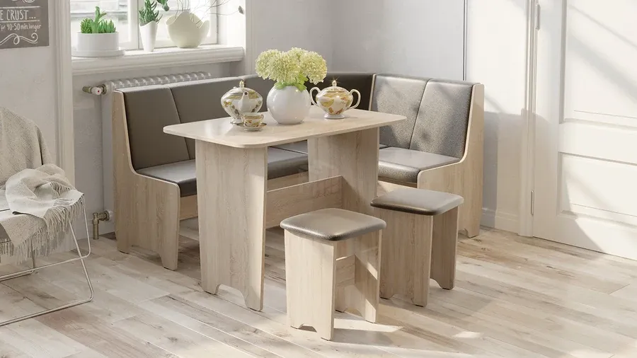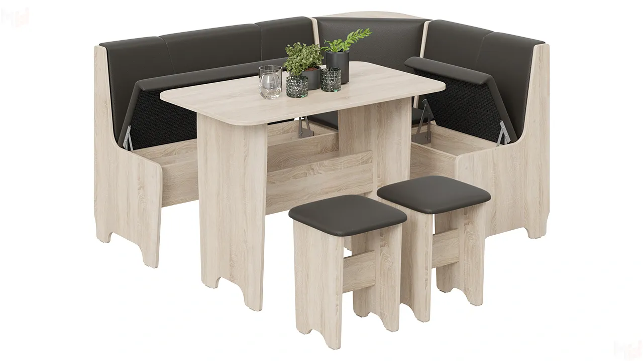 Кухонный уголок Техас Исп.1 Дуб Сонома, Экокожа коричневая