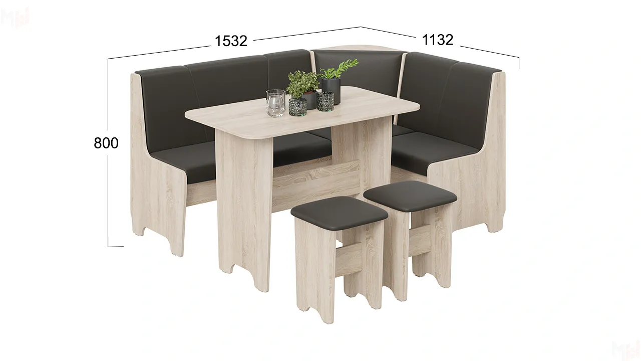 Ширина: 1132 мм, Длина: 1532 мм, Высота: 800 мм