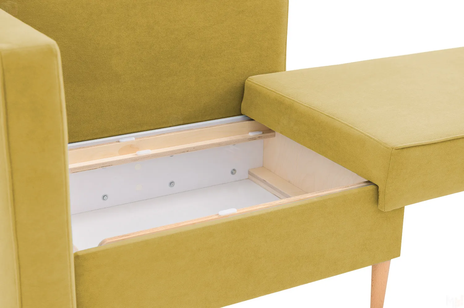 «Джойс» – уютная и компактная кушетка. Мягкий, приятный на ощупь велюр обивки и модный в этом сезоне кант подойдут для самых разных интерьерных решений. Прямые и четкие линии – модель в минималистичном скандинавском стиле наполнит пространство атмосферой уюта и тепла! Под спину идет прямоугольная объемная подушка, которая создаст комфорт человеку любого роста. Механизм разложения прост и надежен, позволяет получить 2 варианта по длине спального места. Модель можно использовать в детской, на кухне или в офисе.