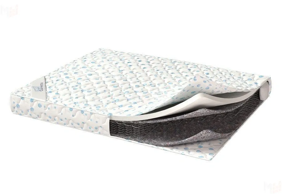 В качестве наполнителей в Compatto используются войлок и пенополиуретан. Войлок - это натуральный наполнитель из овечьей шерсти или хлопка. Войлок износоустойчивый, прочный материал, часто используется как изолирующий слой между пружинным блоком и верхними наполнителями. Умеренно жесткий, хорошо распределяет нагрузку, не подвержен слеживанию и деформации, а также гипоаллергенный, поэтому подходит аллергикам. Пенополиуретан - другое название "поролон" - искусственный материал. За счет пористой структуры имеет хороший воздухо - и влагообмен. Благодаря упругой структуре равномерно распределяет нагрузку по поверхности матраса. Самый простой и бюджетный наполнитель. Чехол у матраса - жаккард, 100% полиэстер, простеганый на синтепоне 100 г/м и спанбонде.
