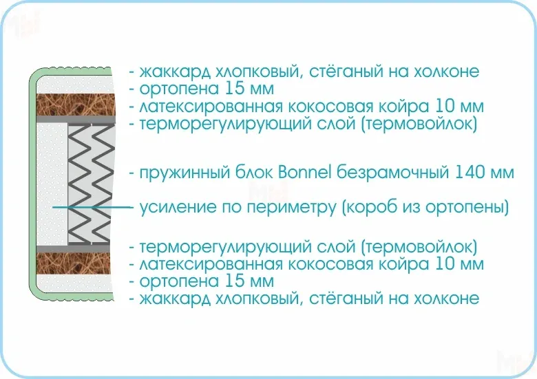 Наполнитель: ортопена, боннель, кокосовая койра, термовойлок