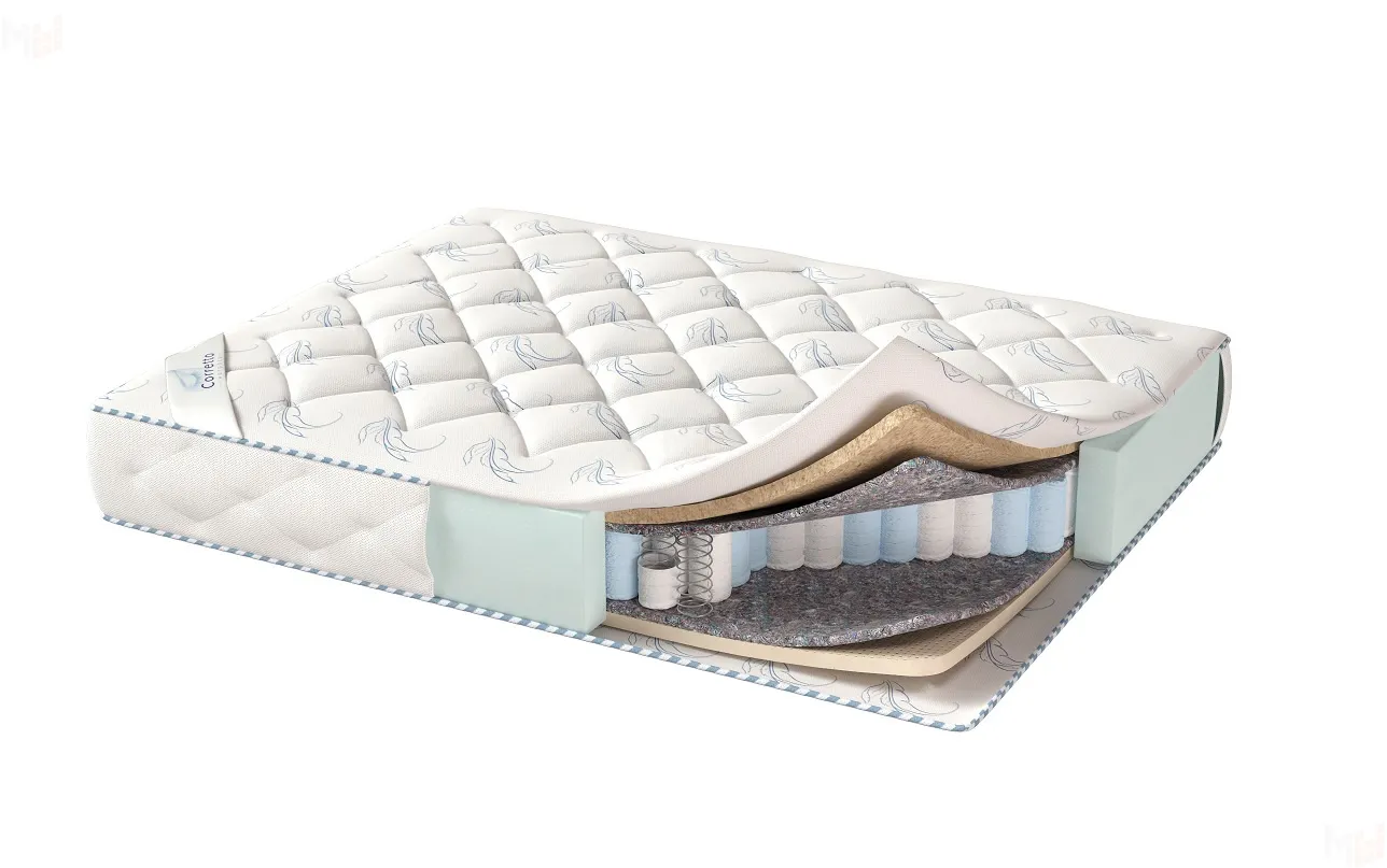 Основой пружинного матраса Verona служит независимый пружинный блок, в котором пружины не связаны друг с другом. Они помещены в отдельные матерчатые футляры, скрепленные между собой. Спирали меньшего диаметра и большего количества витков, чем у блока зависимых пружин «Боннель». На квадратном метре размещается 256–500 штук. Независимые пружины, более мелкие и многочисленные, точно охватывают тело и равномерно поддерживают его, создавая ортопедический эффект во время сна. Ортопедические свойства, заданные пружинным блоком, можно корректировать наполнителями. В матрасе Verona используются: жесткая кокосовая койра искусственный латекс термовойлок