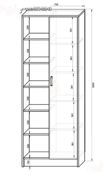 - стеллаж 13/4 комбинированный - оснащен двумя отделами: открытый с полками (предусмотрена задняя панель) и закрытый с полками;