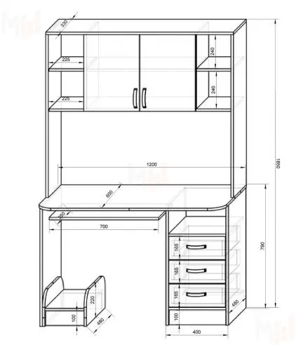 - стол с надстройкой с выкатными ящиками для канцелярских товаров и системой хранения.