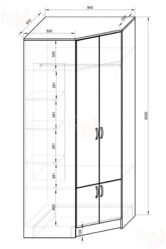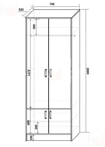 - гардероб двухдверный, наполнение - антресольная полка и штанга.