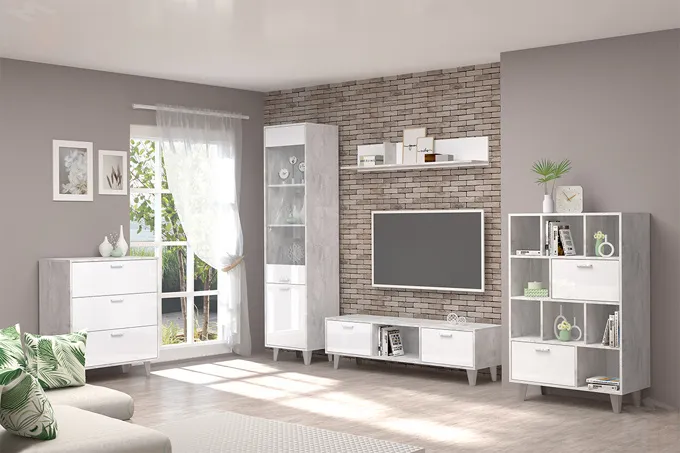 Гостиная Эго Бетон Светлый/Белый Глянец Вариант 2