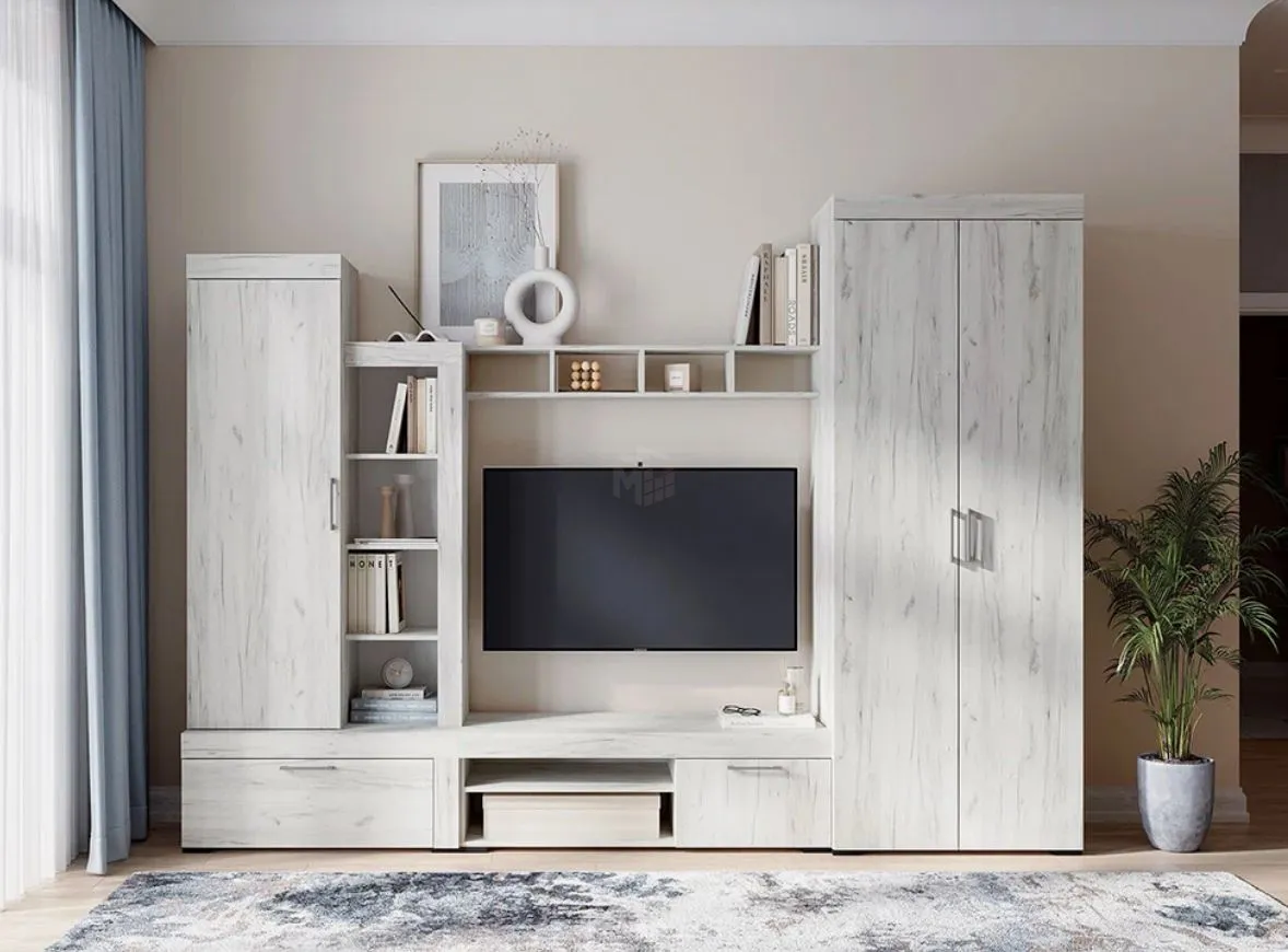 Гостиная Гранд 2 выполнена в оригинальном стиле, выраженном в четких прямолинейных формах, совершенных пропорциях и великолепном цвете белого дуба. Светлые тона этой мебельной коллекции уверенно вольются в интерьер любого стиля благодаря главной ставке: форма не должна затмевать содержания. Кроме этого, широкая линейка этой серии позволит оформить в едином стиле и гостиную, и спальню, и детскую комнату. -