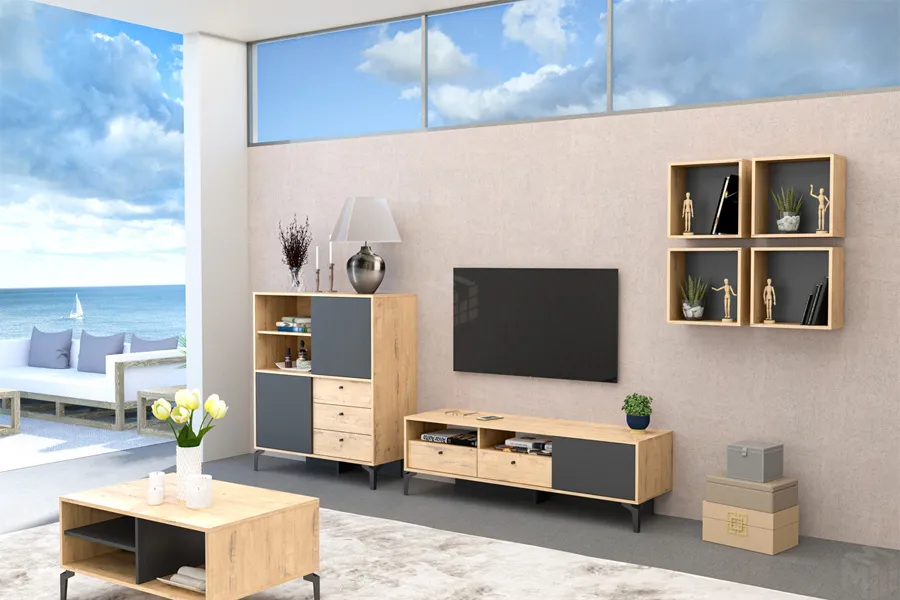 Мебель выполнена из ЛДСП Дуб бунратти/антрацит