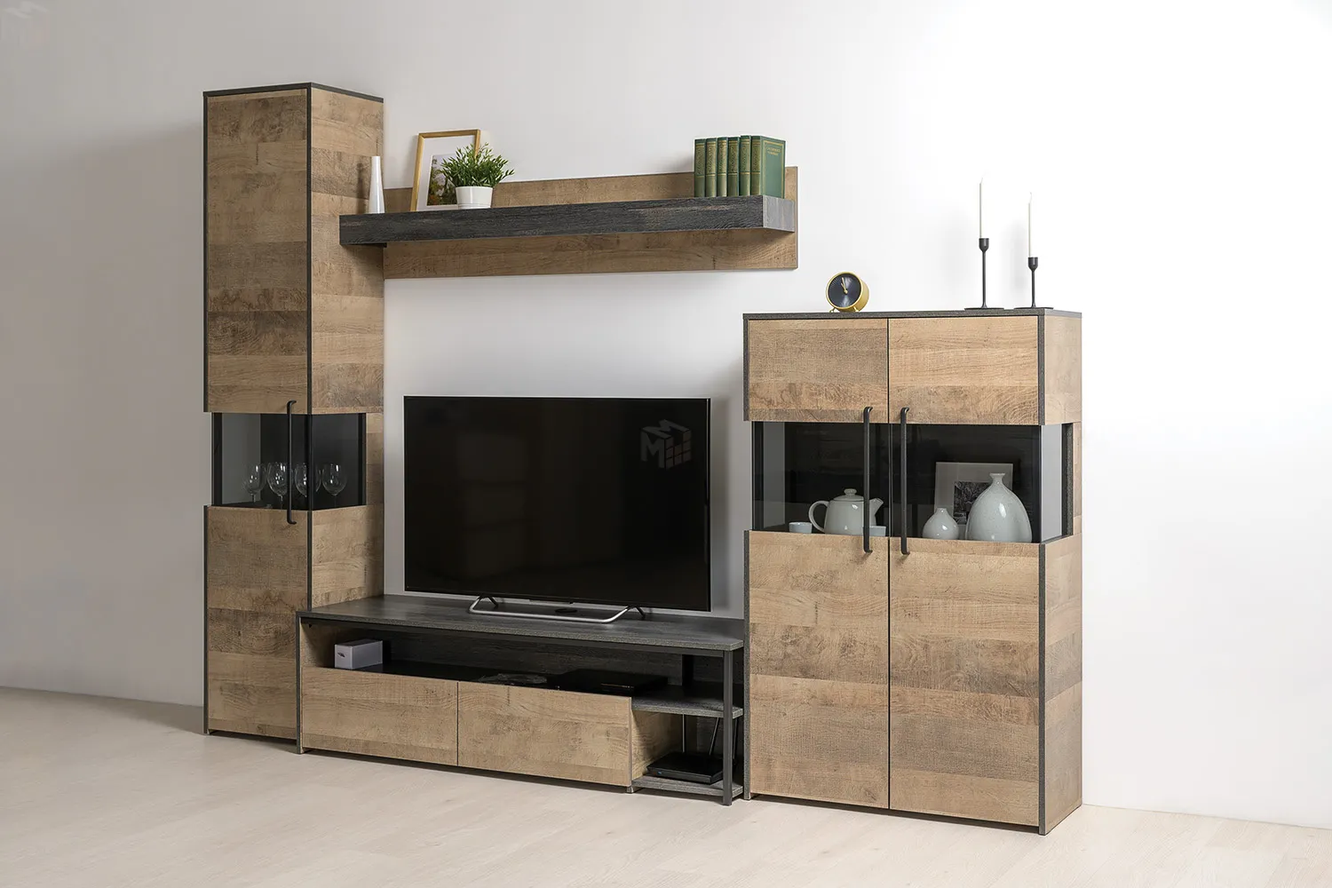 Гостиная Трувор (вариант 1) поможет создать уютную обстановку в вашей гостиной. Теперь у вас будет уютная комната, в которой вы сможете проводить свободное время со своей семьей или друзьями. Тумба поможет разместить телевизор для более комфортного просмотра новостей, сериалов и различных телепередач. Открытые ниши предназначены для необходимой аппаратуры. Навесная полки и полки стеллажа созданы для бережного хранения наборов красивой посуды, интересных и увлекательных книг, семейных фотоальбомов, коллекции интересных предметов, оригинальных сувениров, статуэток, детских поделок и многого другого. За глухой дверцей можно хранить более ценных и важные предметы, а также одежду и белье. Индустриальная мебель Трувор выполнена в стиле лофт.
