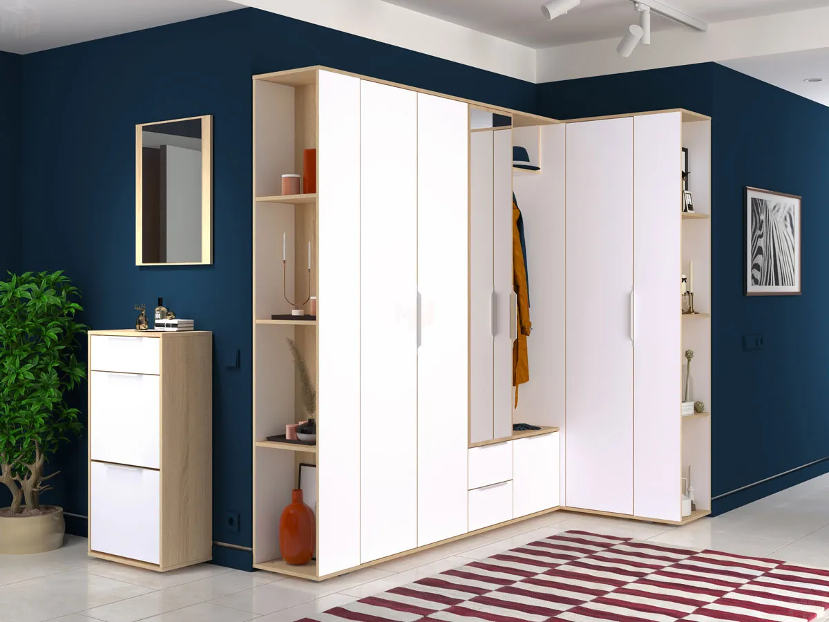 В линейке присутствуют модули с нестандартной конструкцией, повышающие вместимость.Лаконичная дизайнерская фурнитура идеально дополняет внешний вид прихожей Куба.