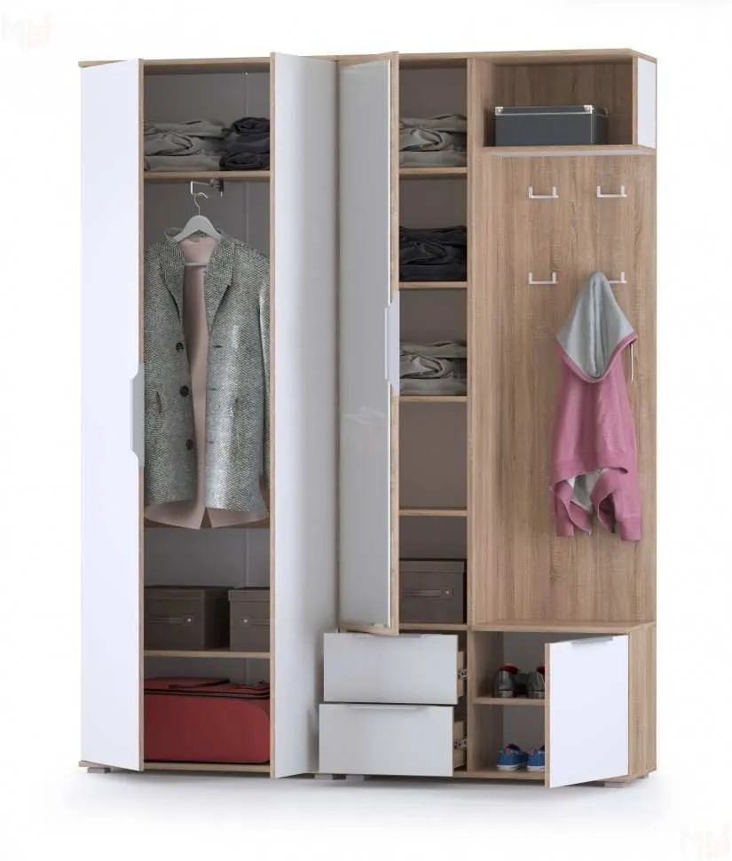 В линейке присутствуют модули с нестандартной конструкцией, повышающие вместимость.Лаконичная дизайнерская фурнитура идеально дополняет внешний вид прихожей Куба.