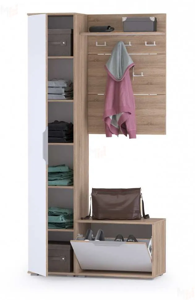 В линейке присутствуют модули с нестандартной конструкцией, повышающие вместимость.Лаконичная дизайнерская фурнитура идеально дополняет внешний вид прихожей Куба.