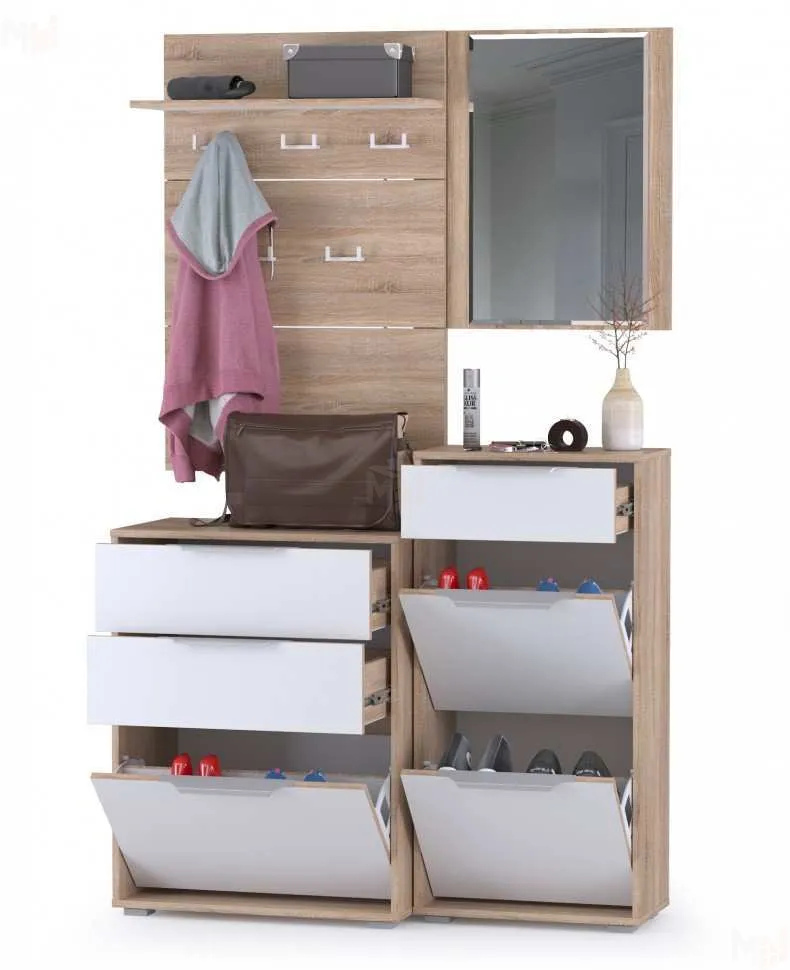 В линейке присутствуют модули с нестандартной конструкцией, повышающие вместимость.Лаконичная дизайнерская фурнитура идеально дополняет внешний вид прихожей Куба.