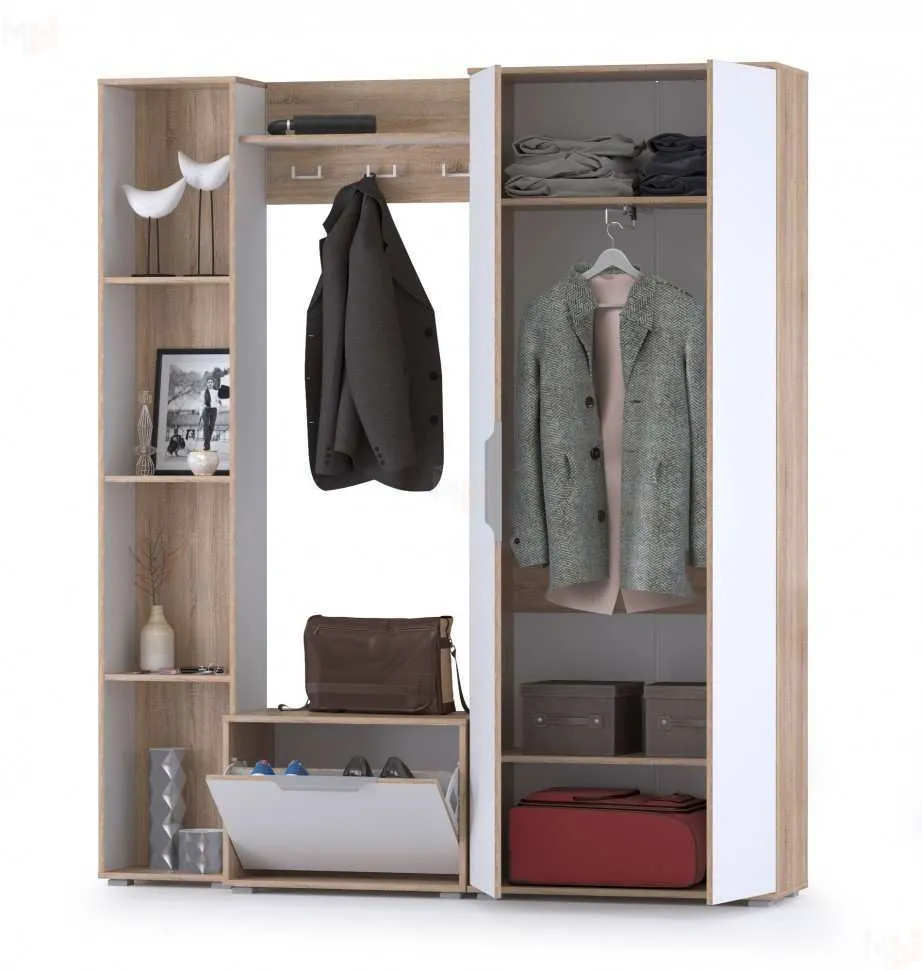 В линейке присутствуют модули с нестандартной конструкцией, повышающие вместимость.Лаконичная дизайнерская фурнитура идеально дополняет внешний вид прихожей Куба.
