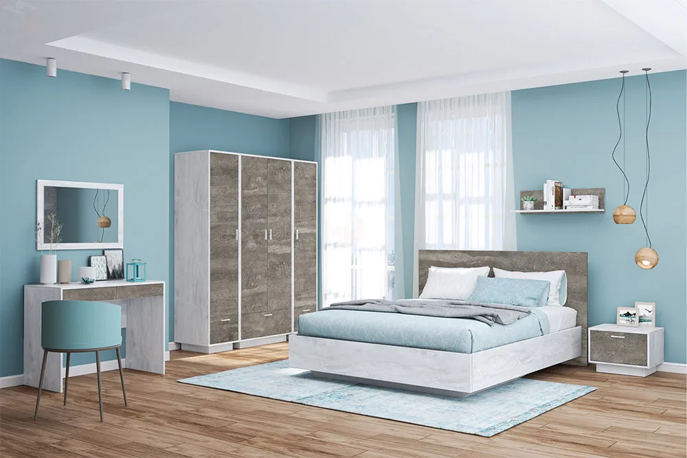 Спальный гарнитур ЭГО Бетон Светлый/Камень Темный Вариант 4