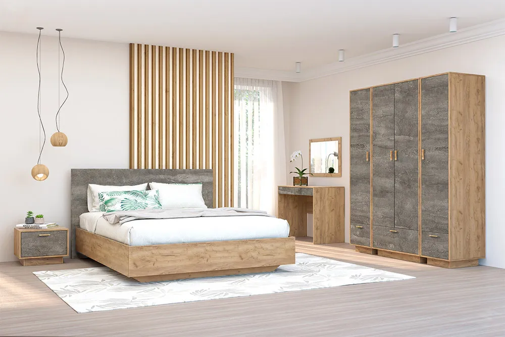 Спальный гарнитур ЭГО Дуб Крафт/Камень Темный Вариант 9