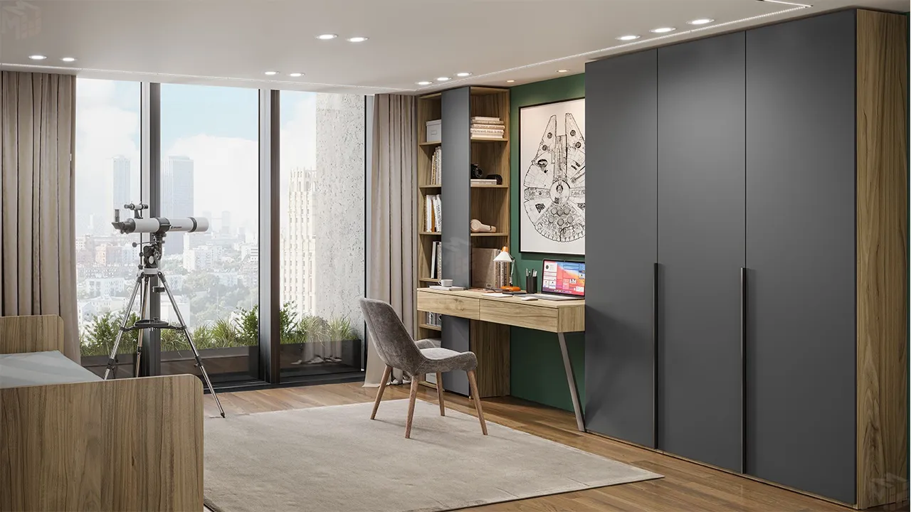 Стол письменный со шкафом комбинированным Порто - СМ-393.15.012 Графит