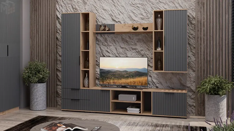 Набор мебели для гостиной Хилтон №1 Дуб Крафт золотой, Графит матовый