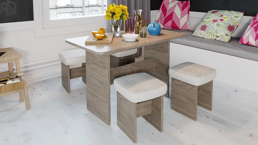 Обеденная группа Дублин Дуб Сонома трюфель, Кожзам Светлый, Ткань Светлая