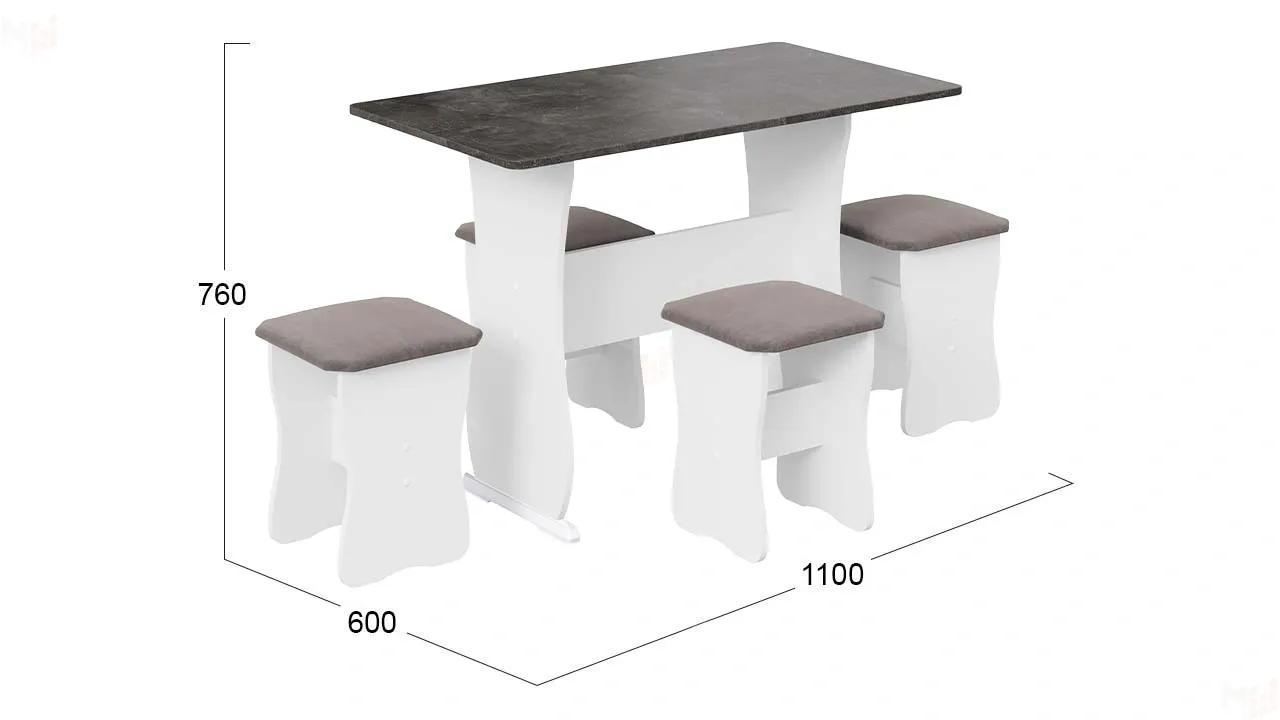 Обеденная группа тип 1 - МФ-101.006 Белый, Ателье темный, Иск.замша Stone