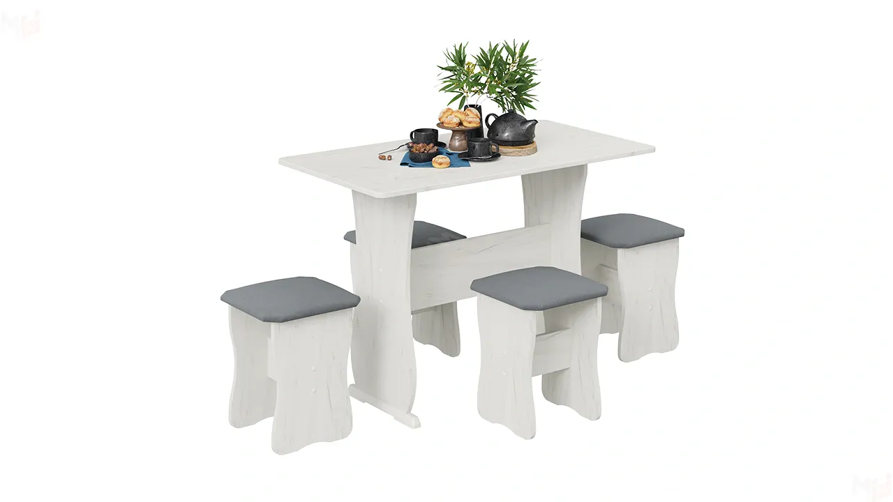 Обеденная группа тип 1 - МФ-101.006 Дуб крафт белый, Велюр Серый