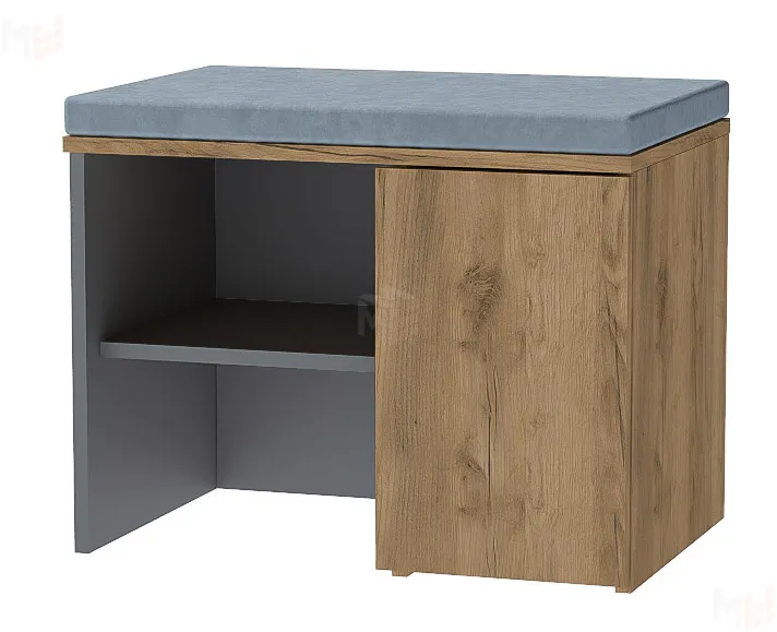 Универсальная обувница имеет серое мягкое сиденье.