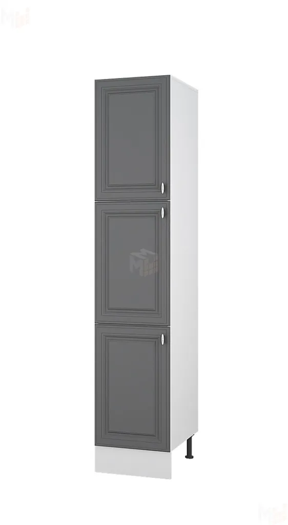 Пенал шириной 45 см вместит множество предметов кухонной утвари. Корпус ЛДСП белого цвета, фасады МДФ графит софт.
