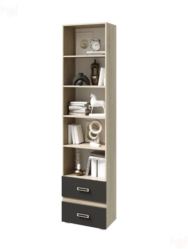 Пенал выполнен из ЛДСП Дуб сонома, фасады МДФ Графит софт.