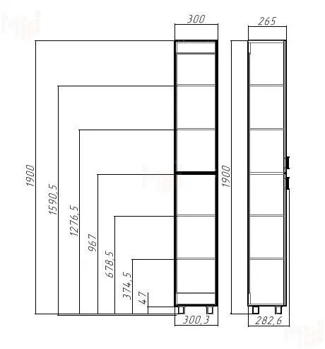 Пенал напольный Loko 30 левый/правый без ящика Домино.