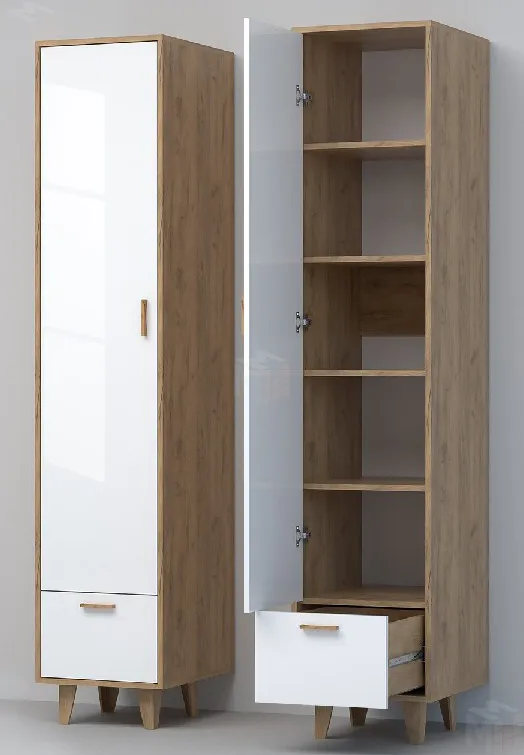 Пенал имеет дверку и выдвижной ящик на шариковых направляющих полного выдвижения.