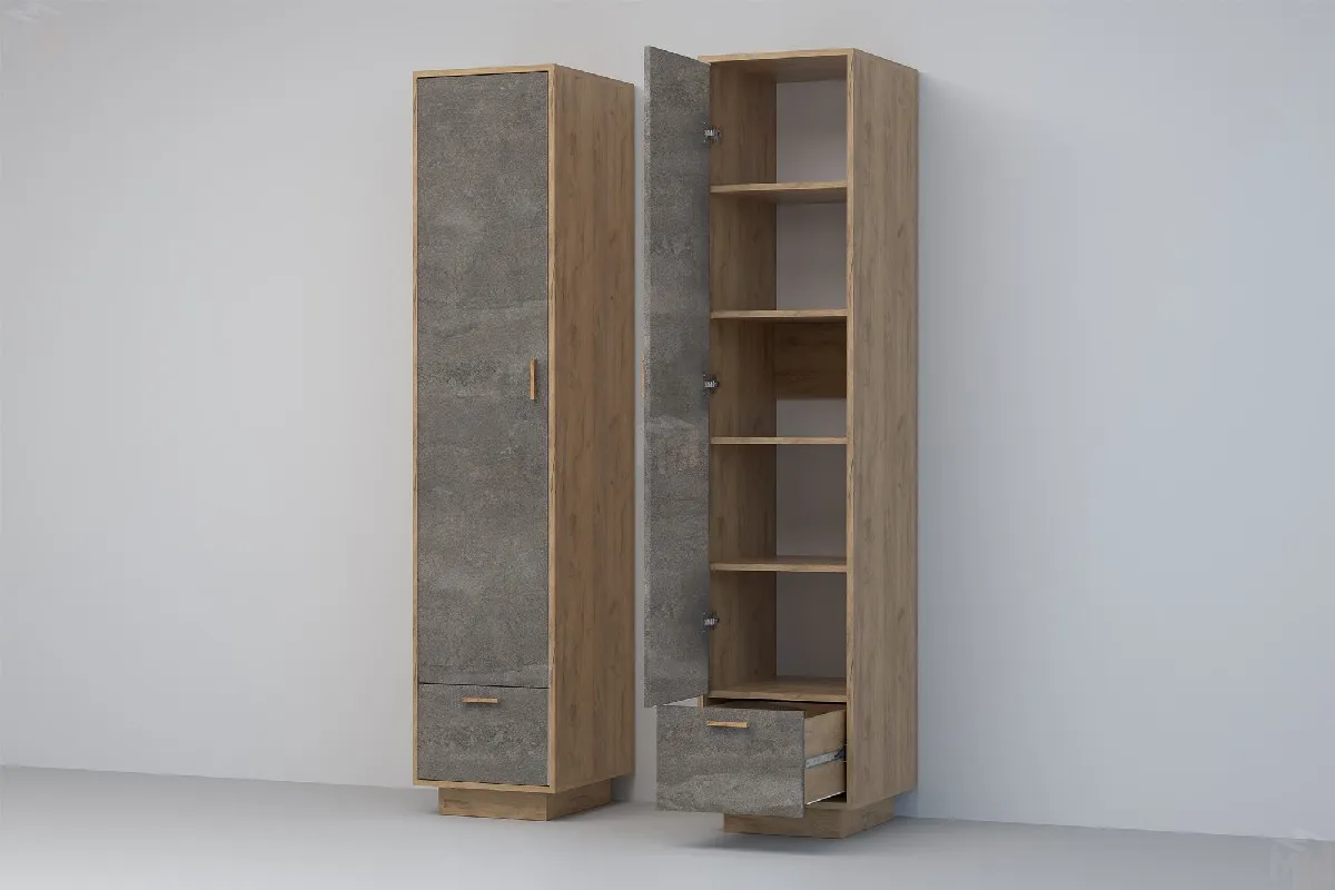 Пенал имеет дверку и выдвижной ящик на шариковых направляющих полного выдвижения.