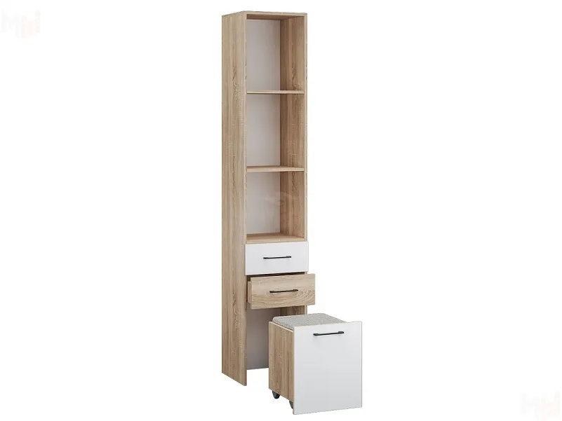 Пенал с пуфом Денвер станет незаменимым элементом для обустройства уютной и достаточной приветливой прихожей. За распашной дверью расположено полки, созданные для хранения сезонных головных уборов, разнообразных аксессуаров и коробок с обувью. Небольшие выдвижные ящики можно использовать для размещения мелких предметов. Нижний ящик представляет собой выдвижной пуф, который пригодится во время надевания и снятия обуви.