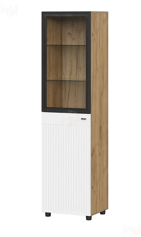 Пенал со стеклом Милан Дуб Золотой/Белый Матовый
