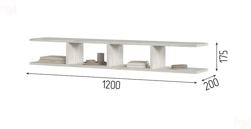 ширина 1200 мм, глубина 200 мм, высота 175 мм