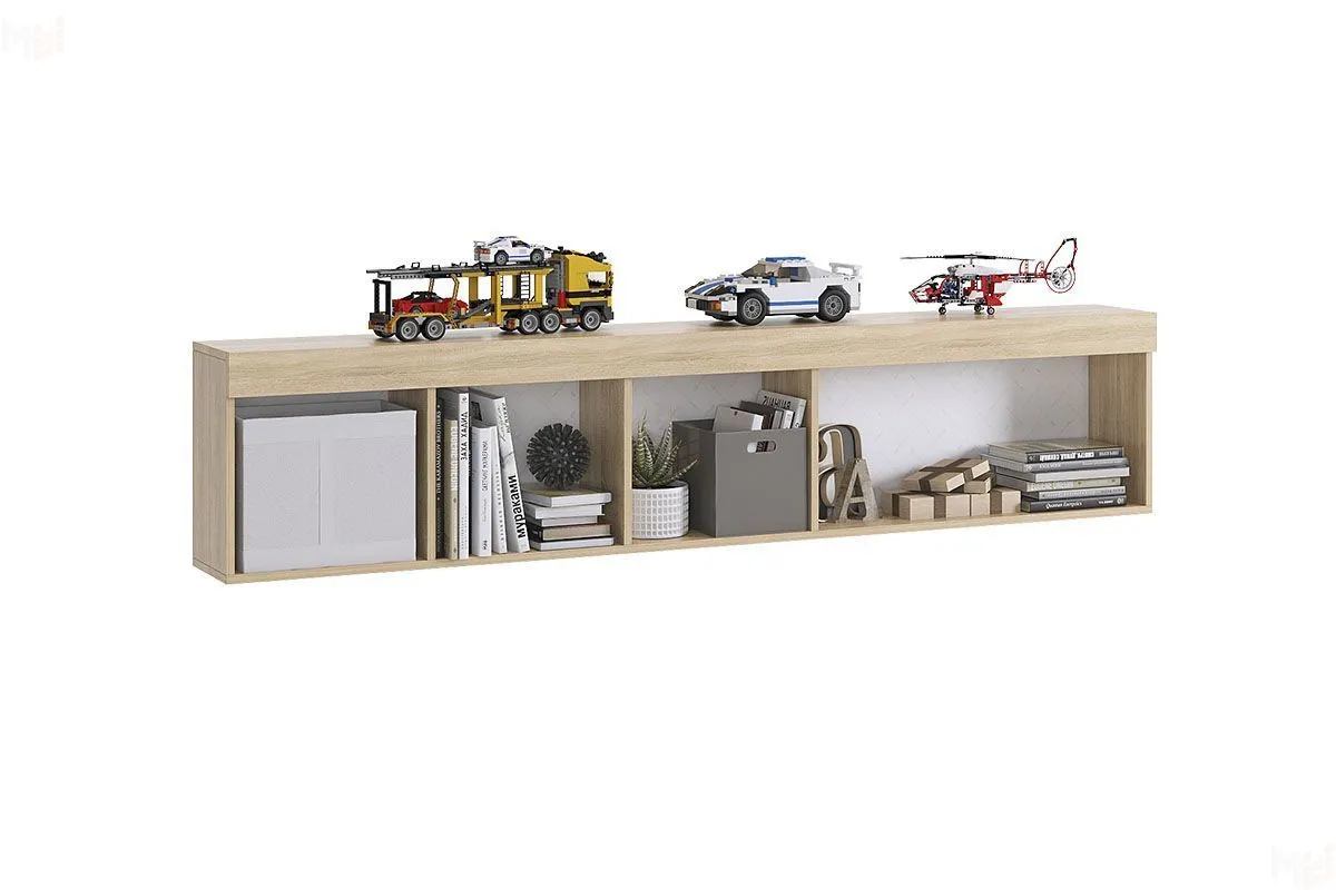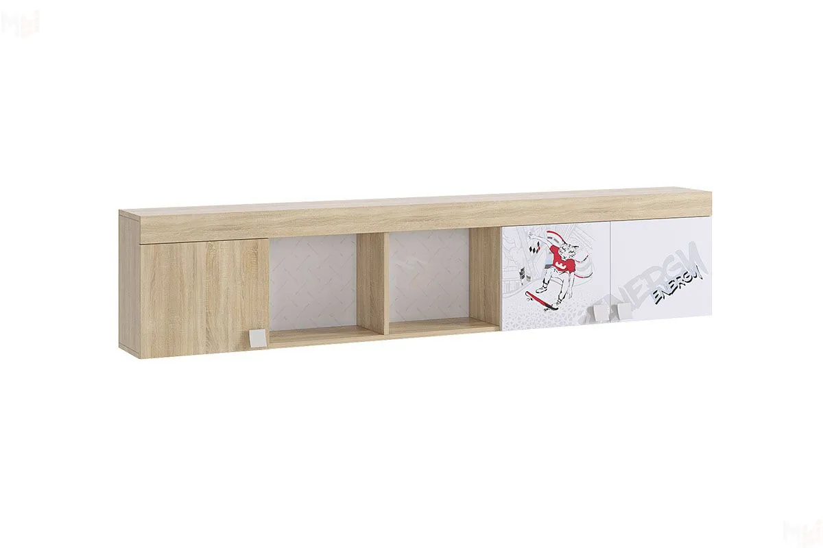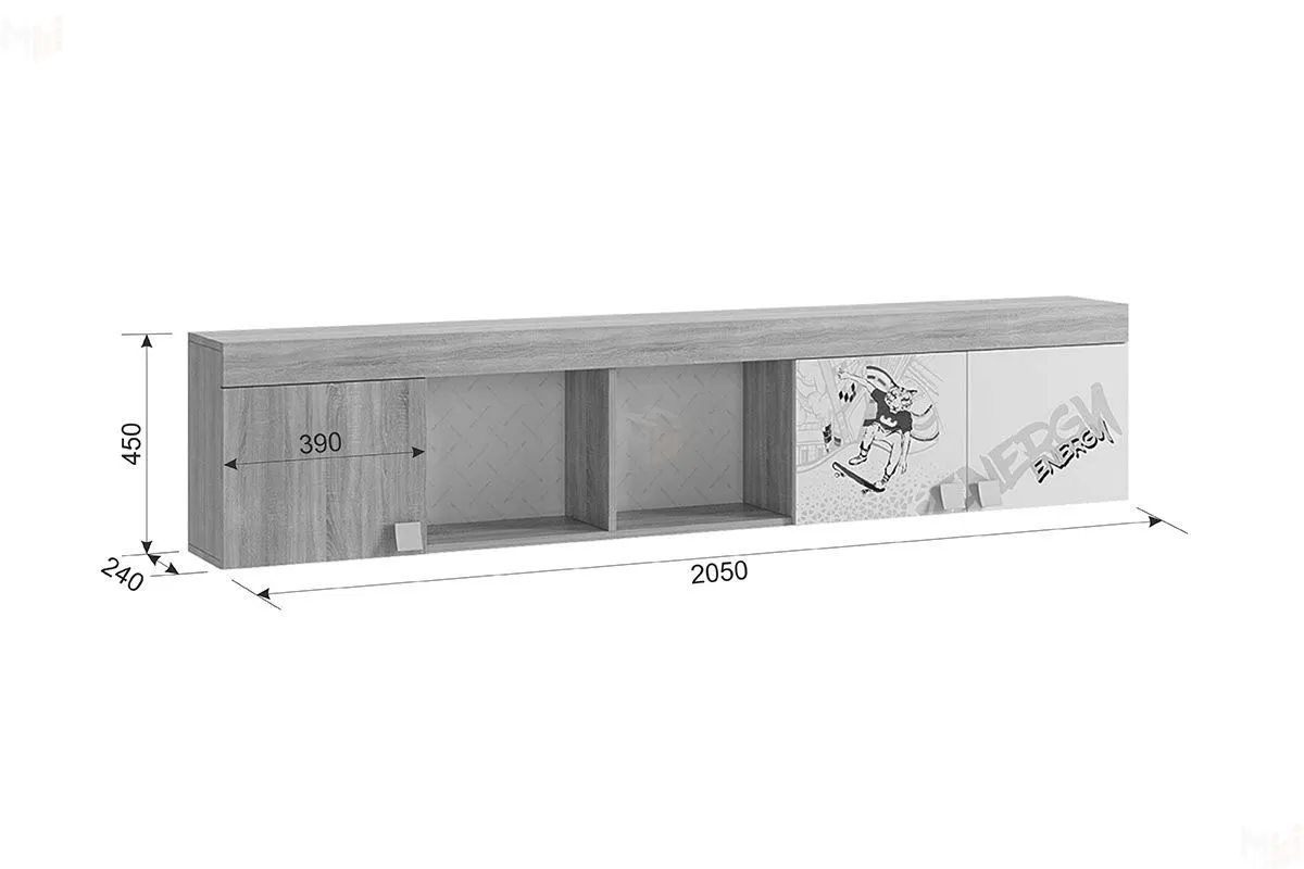 В закрытые шкафы и открытые ниши поместятся все учебники книги и сувениры. Эффектный принтерный рисунок на фасадах выдержан в общем стилистическом решении. Рисунок устойчив к истиранию и ультрафиолету. Можно повесить между шкафов над софой или использовать как самостоятельное изделие. -