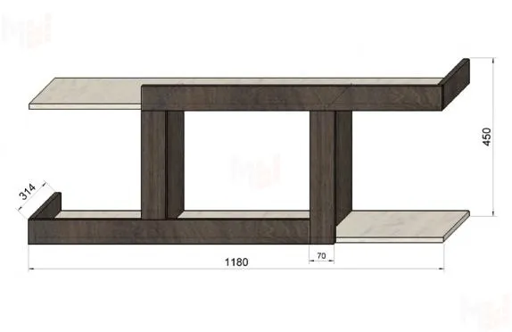 Полка Фанки Тайм ФТ-13 - легкий навесной модуль, который состоит из одной ограниченной секции и двух открытых полок по бокам.