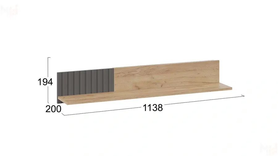 Полка настенная Хилтон Исп.2 - 413.22 Дуб Крафт золотой, Графит матовый