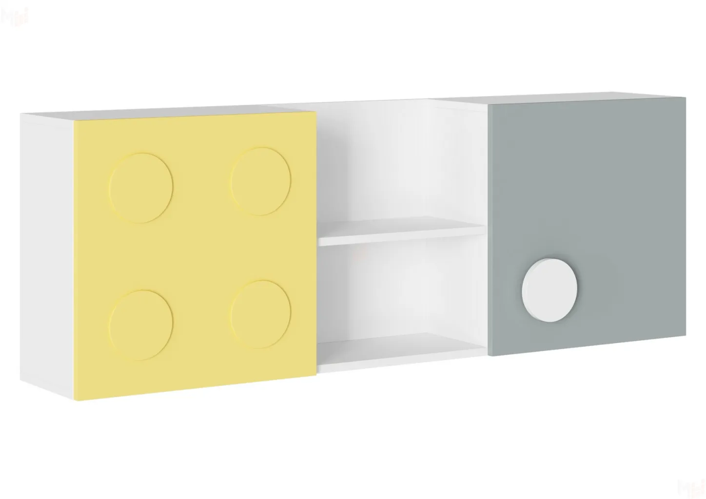 Полка навесная ПН-001 имеет два распашных фасада: один из МДФ 16 мм в пленке ПВХ Грин Грей Софт.