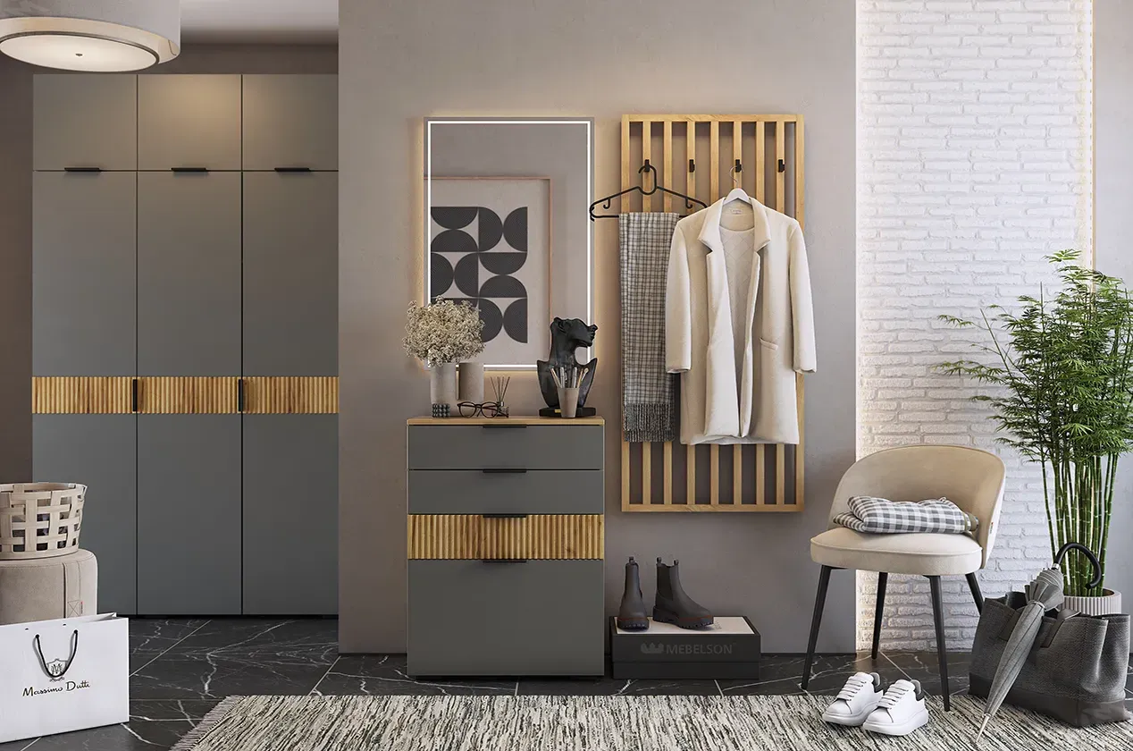 Бери Антресоль трехдверная (дуб крафт золотой/графит) 1 шт.