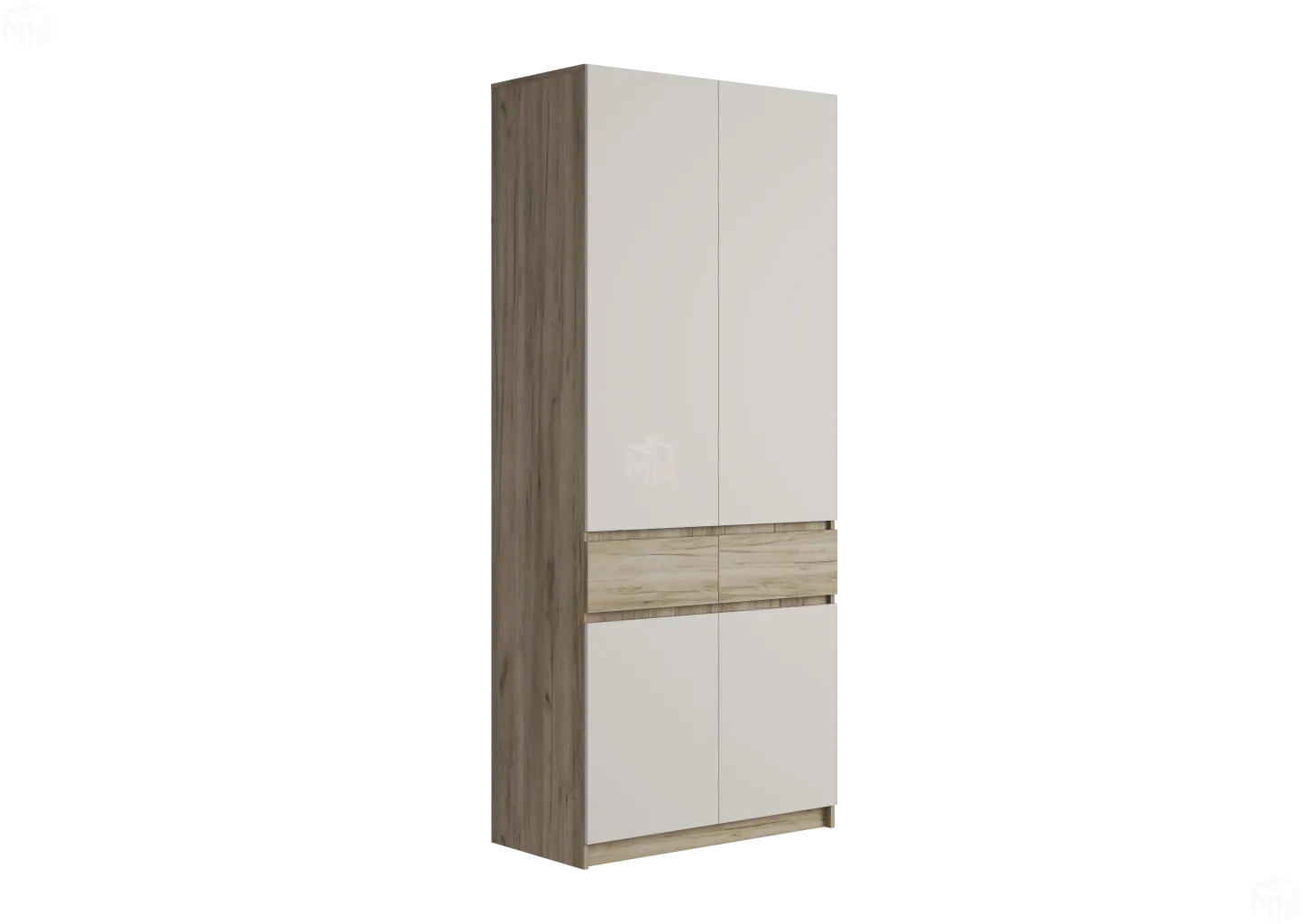Помимо объемного отсека под одежду с металлической штангой, в шкафе Бостон ШК-001 предусмотрено два удобных выдвижных ящика на шариковых направляющих, а также четыре полки небольшого размера и большая верхняя полка-антресоль. -